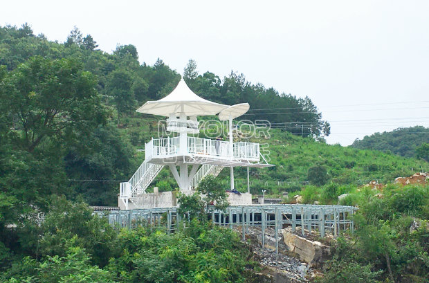 溜索,是滑索演變的另外一種新型游樂設備,源于我國少數民族的主要渡河交通工具。現代溜索已演化為一項具有挑戰性、刺激性和娛樂性的現代化游樂項目。它與滑索的不同之處是只有一根承載索滑行,游客穿戴柔性吊具懸座在滑車之下,以斜拉的一根鋼絲繩為軌道從高處向下滑行。使人在有驚無險的歡愉中盡情的陶醉于大自然的迷人美景之中,給予了人們高空滑翔的驚險刺激和超常體驗,既扣人心弦又安全可靠。