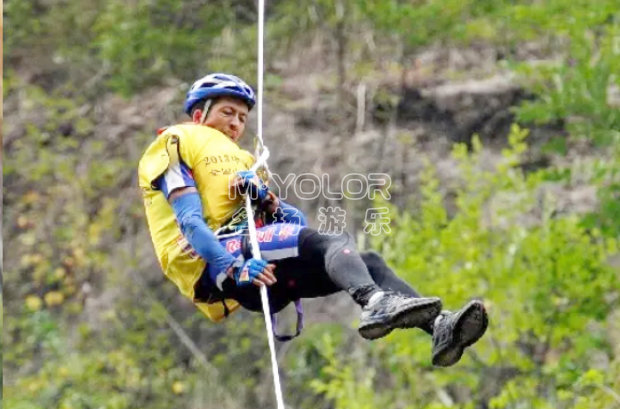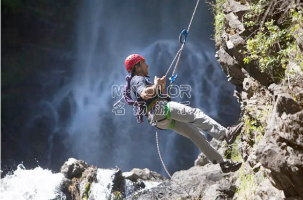 速降,源自高山探險(xiǎn)下撤保護(hù)技術(shù),在搶險(xiǎn)、運(yùn)輸和軍事突襲行動(dòng)中也經(jīng)常使用,后來(lái)演化成與攀巖、蹦極類似的極限戶外運(yùn)動(dòng)項(xiàng)目。它已分化成崖降、樓降、橋降、溪降等類別。速降是在教練的指導(dǎo)與保護(hù)下,借助景點(diǎn)的自然落差,利用繩索由巖壁頂端下降,參與者可以自己掌握下降的速度、落點(diǎn),以到達(dá)地面。速降需要十分嚴(yán)格的操作與熟練的技巧,同時(shí),參與者必須克服對(duì)高度、速度的恐懼,具備勇往直前、堅(jiān)持到底的決心。